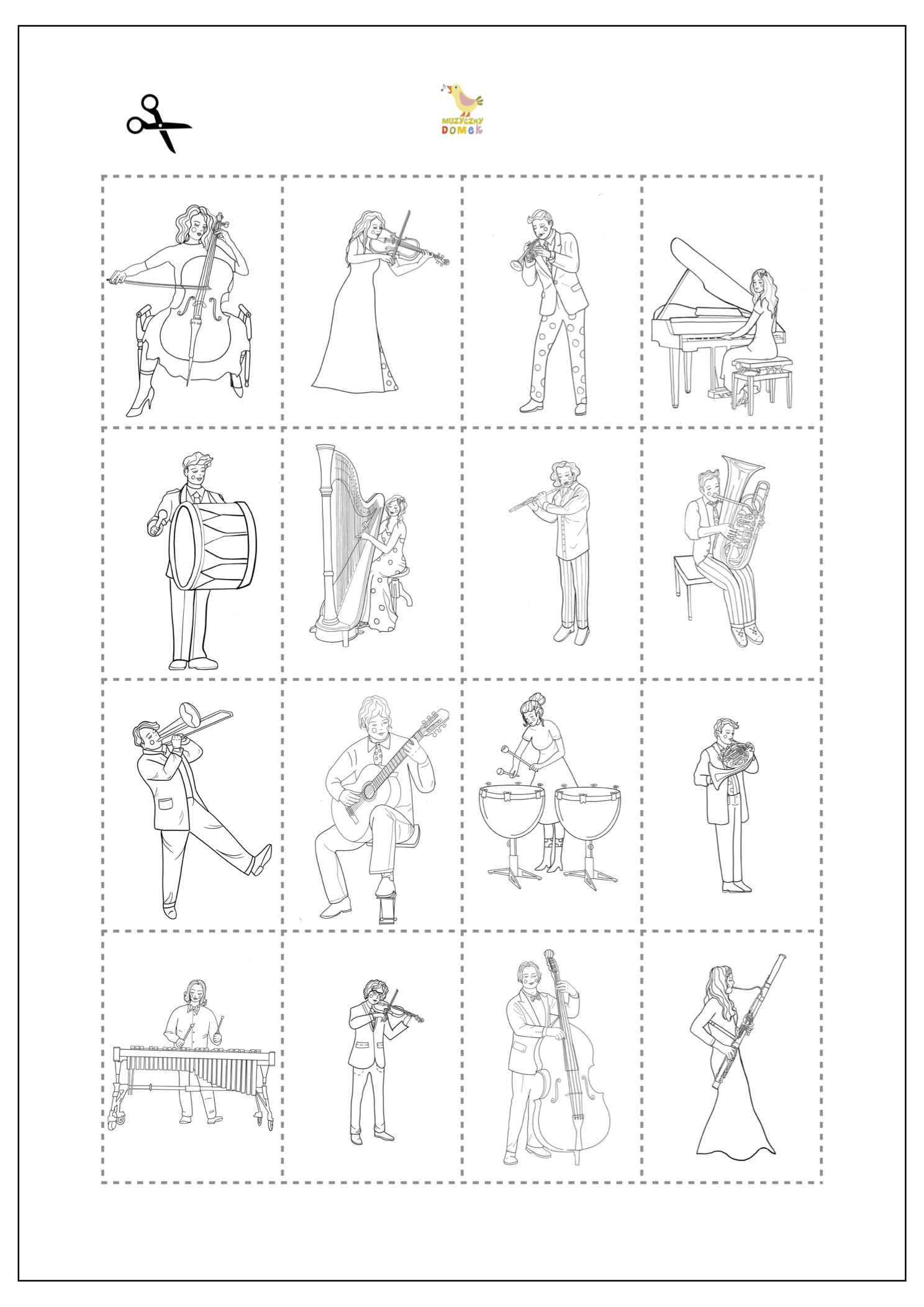 „Instrumenty muzyczne” to 36 ilustracji instrumentalistów i ich instrumentów oraz 6 kart pracy, przeznaczone do nauki oraz twórczych zadań plastycznych w przedszkolu, szkole lub w edukacji domowej.